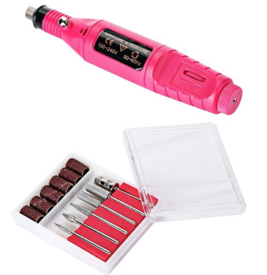 Freza Unghii Roz, include 5 pile 5 capete abrazive